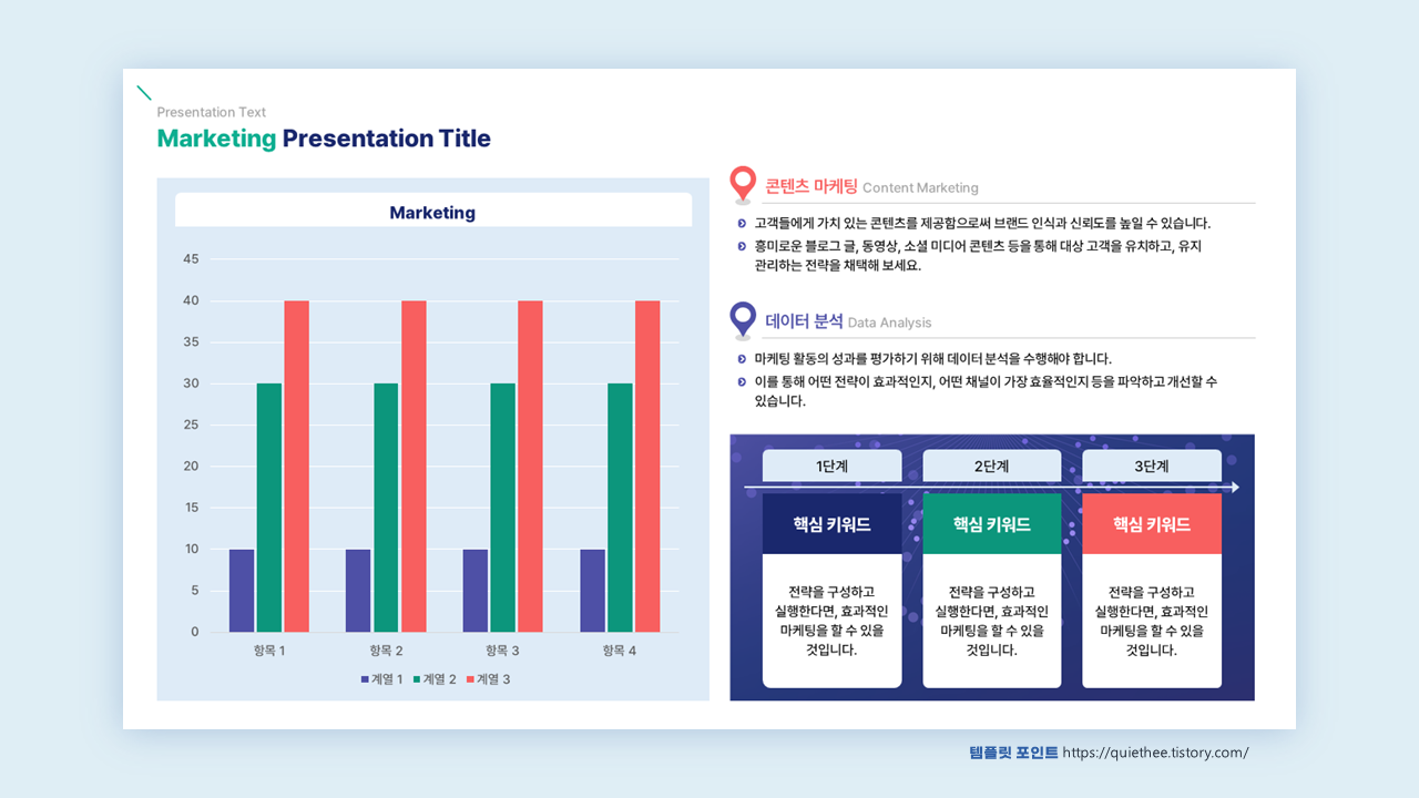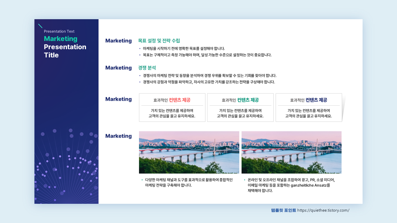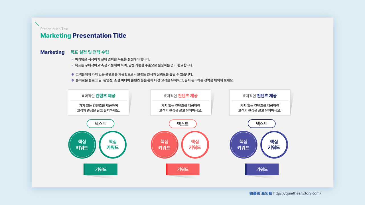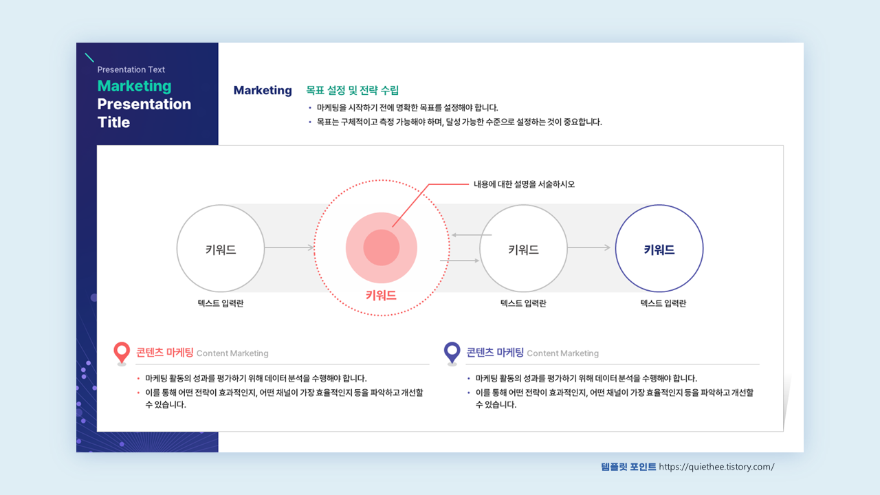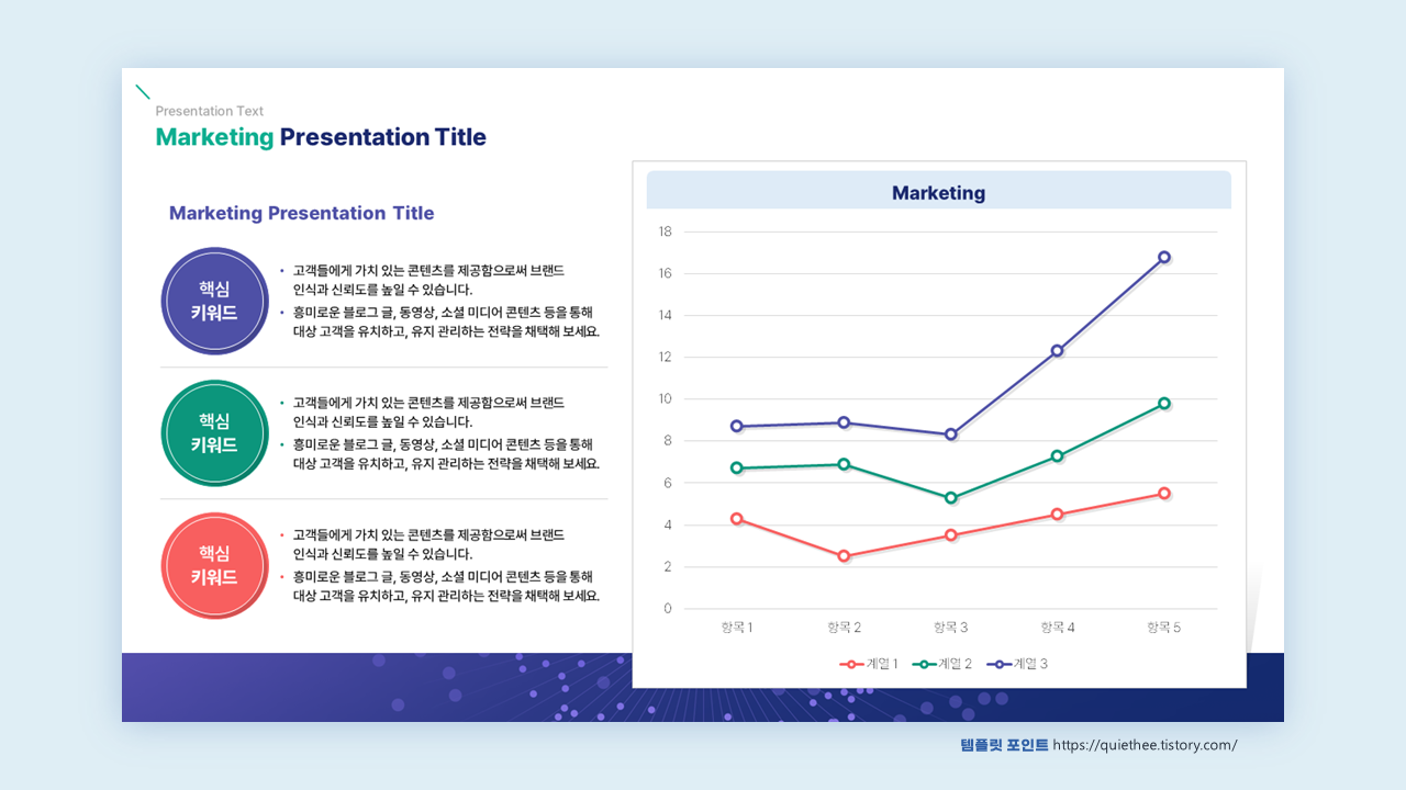 블루컬러의 깔끔한 마케팅 기획서 제안서 PPT 무료 템플릿입니다. 항상 새로운 콘텐츠를 찾고 정리하기 바쁘신 분들께, 이 PPT 템플릿이 도움이 되었으면 좋겠습니다!